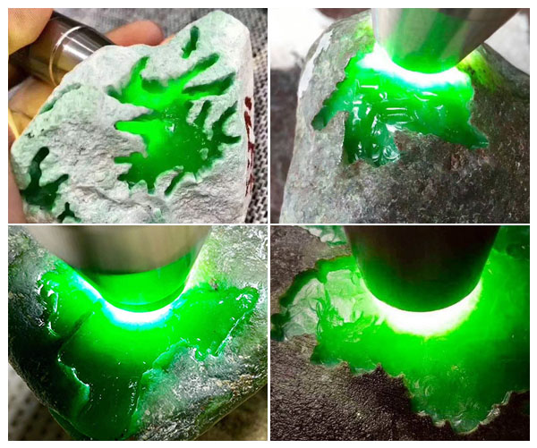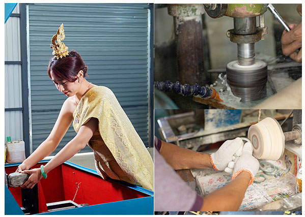 每次在缅甸矿区挑选到心仪的毛料,都会运到自己的工厂切料部,切割后根据翡翠石不同部位的成色来制作手镯和精美的挂件。