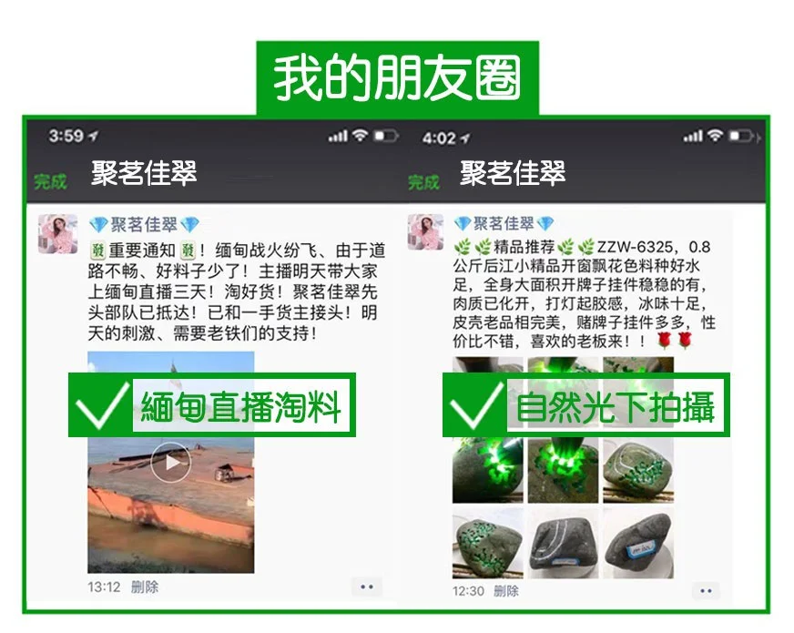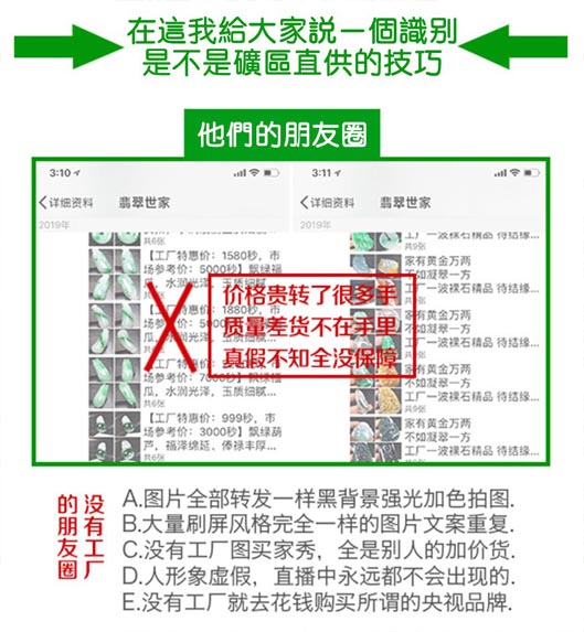朋友圈很多微商都是市场上拍照转发图片,实际上手里货都没有,也没见到货,这样多次转手翡翠不好价格还很贵,那要如何识别他们呢?