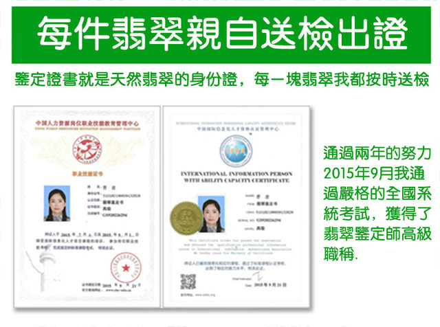 你好,我是翡翠鉴定师 ,祖辈一直在缅甸经营翡翠工厂,以翡翠原石开采、雕刻制作为生。到我这一代已经经过30多年。工厂隶属于中缅原矿协会单位,目前我正在申请翡翠雕刻的工艺传承人。
