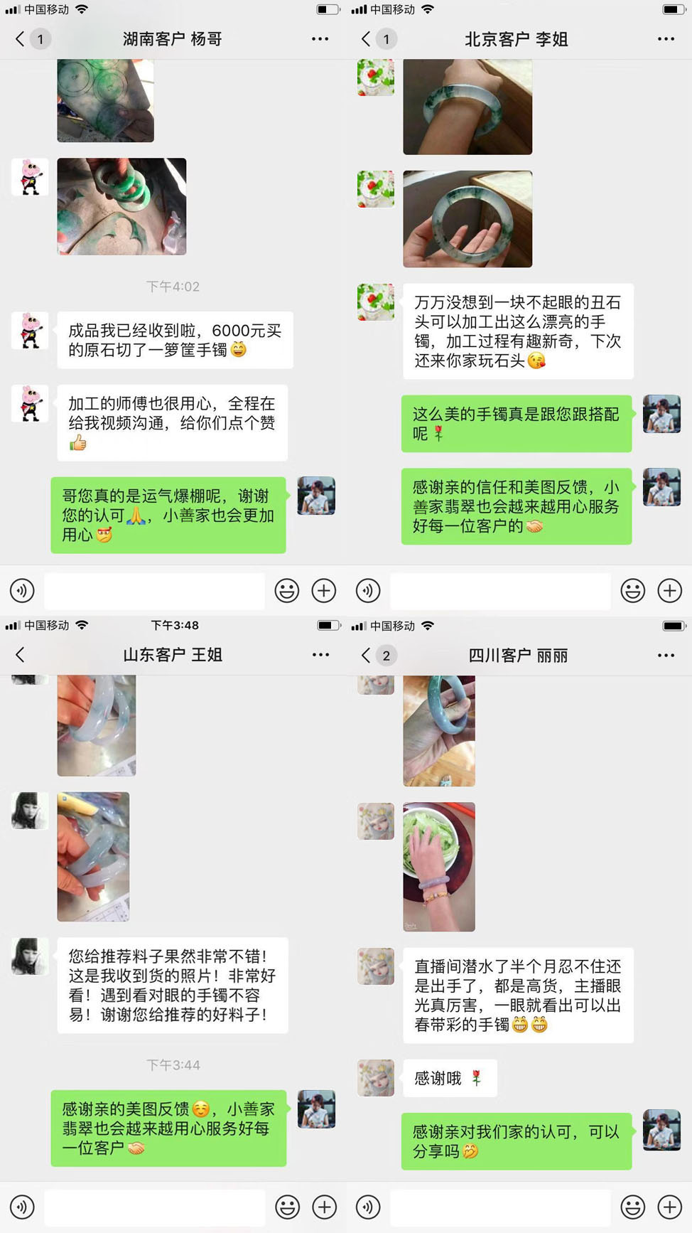每周我们都会做买家秀评选,拍得最认真的会收到我送出的精美礼物,结果越来越多的客人都发来了佩戴我们翡翠的漂亮照片过来,这是我最享受的时刻,也是对我工作的肯定。