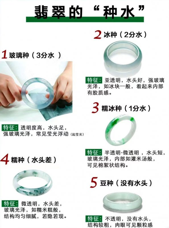 常见的种分为:玻璃种、冰种、冰糯种、糯种、豆种等。
