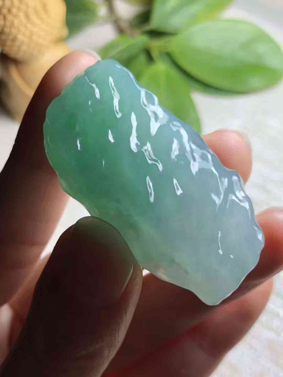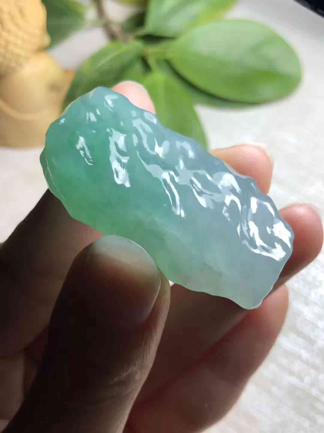 一、透明度好的翡翠,质地细润,翠绿和深绿均具有透明感,如清澈的泉水,并赋有光泽,水份好;